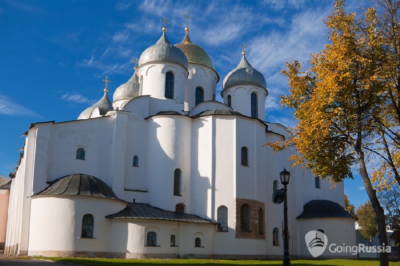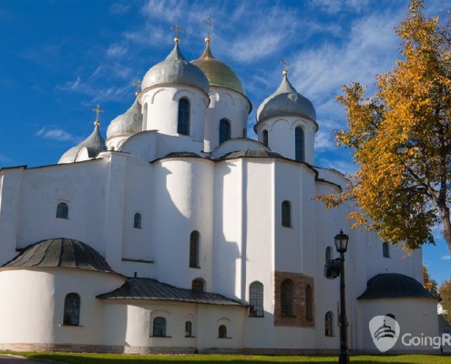 Veliky Nóvgorod. Situada a 190 km al sur de San Petersburgo, a orillas de rio Voljov y muy cerca del gran lago Ilmen, Nóvgorod es un tesoro medieval declarado “Patrimonio de la Humanidad” por la UNESCO. Esta histórica fue fundada en 859 por los vikingos que comerciaban entre los mares Báltico y Negro como “Holmgard”. Los príncipes de Nóvgorod fundaron el Rus de Kiev, la primera forma de estado ruso. Durante la Edad Media, Nóvgorod se enriqueció notablemente gracias a sus lazos comerciales con la Hansa, exportando maderas y pieles a toda Europa. Nóvgorod controlaba un vasto territorio llamado la Republica de Nóvgorod, que disfrutaba de numerosos fueros y gozaba de gran independencia con respecto al resto de territorios rusos, a través de un sistema de autogobierno democrático único en su tiempo. Durante este periodo Nóvgorod experimento su mayor desarrollo y se convirtió además en un centro cultural de primer orden. En 1478 la ciudad fue conquistada por los moscovitas y anexionada al Ducado de Moscú. En 1570 fue salvajemente saqueada por las tropas rusas de Iván el Terrible que sospechaba Nóvgorod de traición y de quererse entregar a los enemigos de Rusia. La ciudad nunca de recupero de este golpe e inicio un lento declive. Esto es una de las razones por la que sus tesoros medievales han llegado hasta nuestros días y podemos admirarlos en la actualidad. Visita panorámica de Nóvgorod. Visita de los principales lugares de interés turísticos de la ciudad: en sus exteriores, a orillas del Voljov, se sitúa el Museo de Arquitectura de Madera, con una veintena de edificios civiles y religiosos traídos aquí desde diferentes puntos de la región, magníficos ejemplos de arquitectura tradicional del Norte de Rusia. Muy cerca se alzan las cúpulas doradas del Monasterio de San Jorge, también llamado Monasterio Yuriev. En el interior de la ciudad, en lo que fue su antiguo centro medieval, se encuentra la Corte de Yaroslav donde admiraremos las Iglesias de los Gremios, dedicadas a sus santos patrones, como la Catedral de San Nicolás. En la otra orilla del Voljov se alza el corazón de la ciudad, su magnífico Kremlin. Visita del Kremlin de Nóvgorod. Esta fortaleza medieval construida en 1044, también llamada “Detinets”, contiene algunos de más antiguos edificios de Rusia: la torre y el reloj y el palacio civil más antiguo de Rusia, la “Cámara de las Facetas”. Pero destaca sin duda su mayor tesoro, la más antigua iglesia de Rusia, la Catedral de Santa Sofía, construida en 1050 por el príncipe Yaroslav el Sabio, en la que admiraremos sus magníficos frescos del siglo XII y las célebres Puertas de Bronce. Otros monumentos en el interior del Kremlin son la Llama Eterna y el Milenario de Rusia.